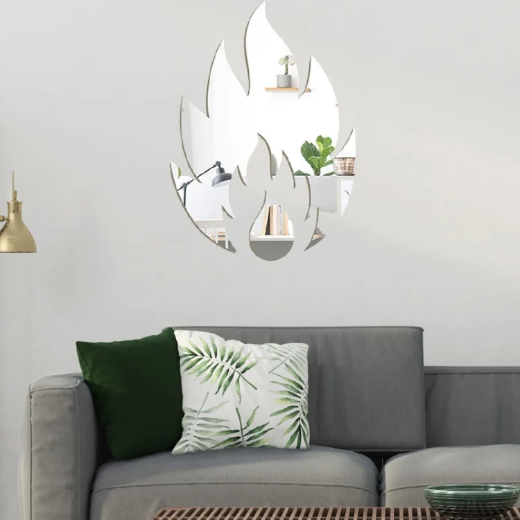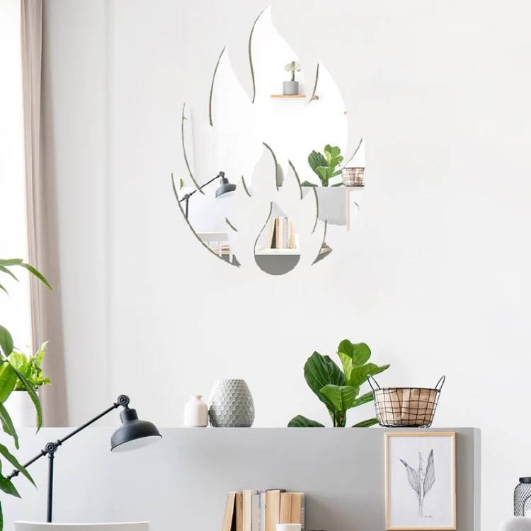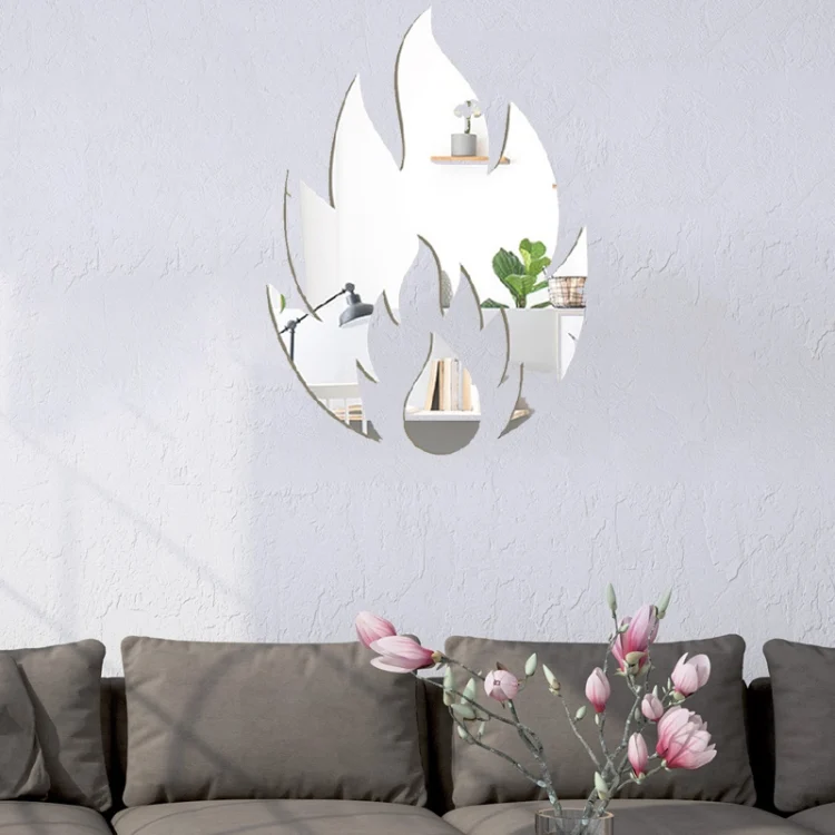 2pcs /Set Acrylic Flame Mirror Stereo Wall Stickers Home Decoration Soft Mirror