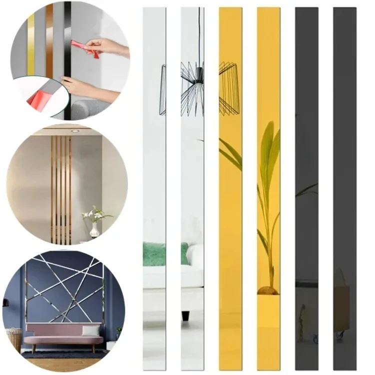 3D Mirror Wall Stickers Beautiful Edge Decorative Strip Living Room TV Background Decorative Self-adhesive Beltline Sewing