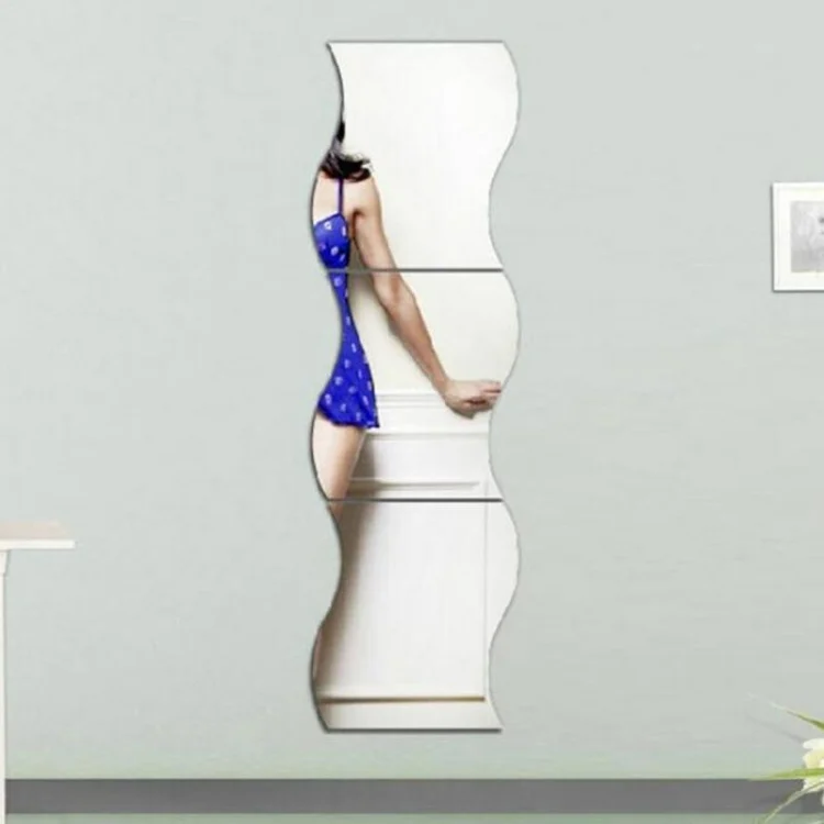 Wall Mirror Acrylic DIY Wave Style Removable Glass Sticker Makeup Mirror Home Bedroom Decorative