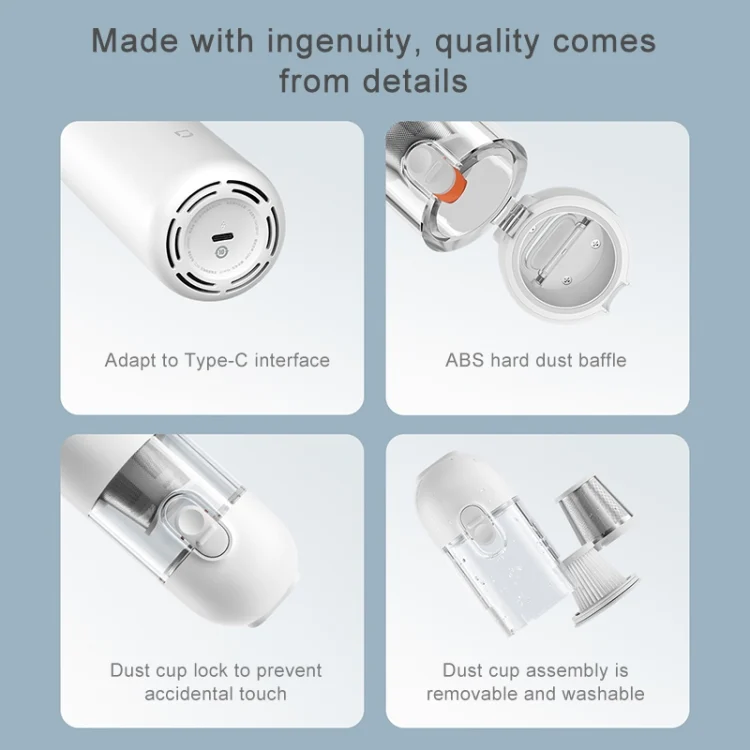 3. Adopt a one-button dust dump design, press the button, and the dust collecting cup lid will pop open automatically to avoid secondary pollution