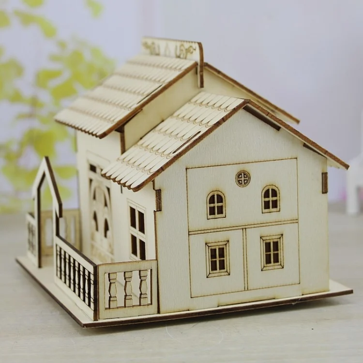 Creative Wooden Night Light Villa Money Coin Storage Box, Random Pattern Delivery