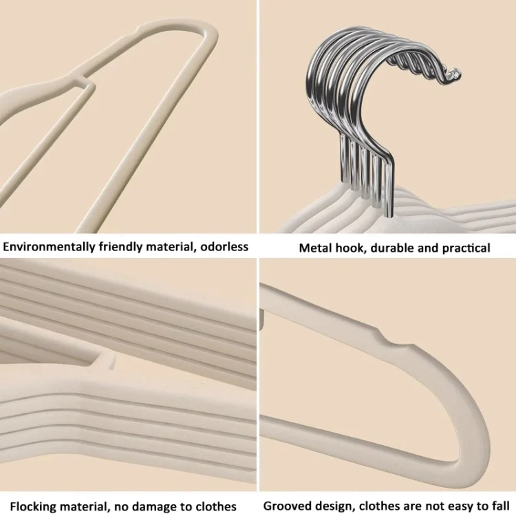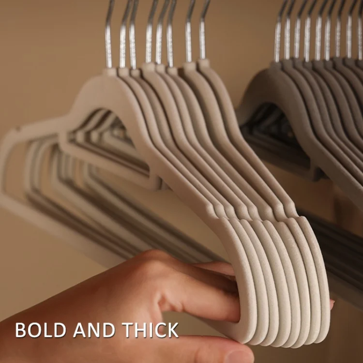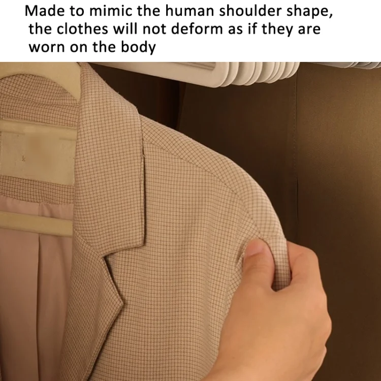 1. The wardrobe space is limited, and a special hanger should be used for long-term hanging. This flocking hanger adopts a streamlined design, saving 3 times the wardrobe space