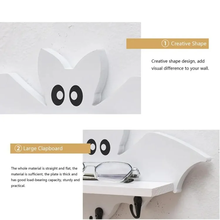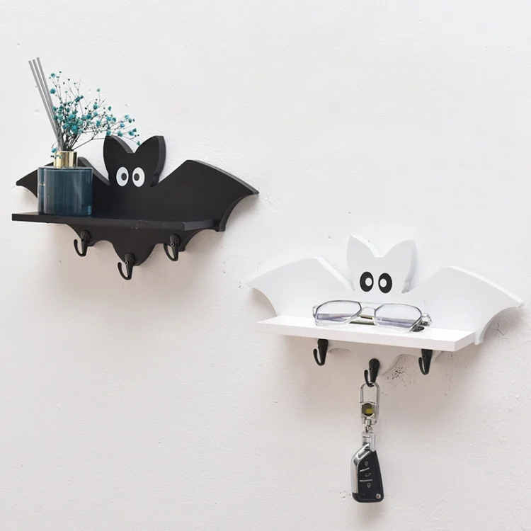 Cartoon Bat Shape Wooden Wall Mount Storage Rack Key Holder