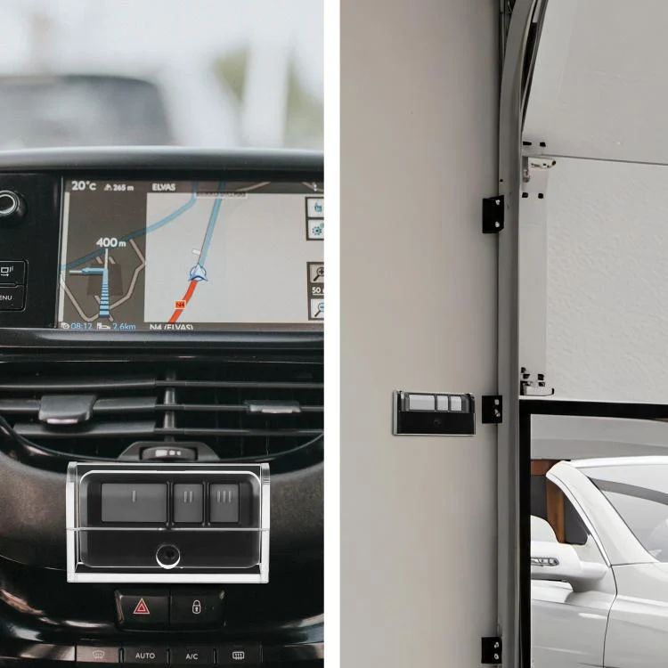 1. Universal wall mount for Liftmaster garage door remotes, suitable for hanging on doors or certain vehicles.