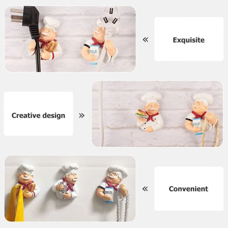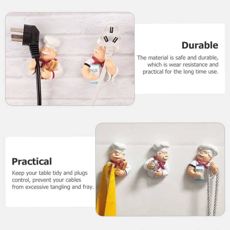 Home Cartoon Chef Power Cord Organizer Kitchen Storage Powerful Sticky Hooks