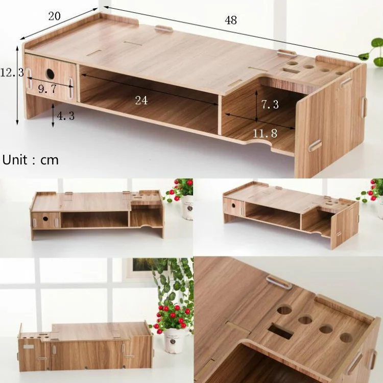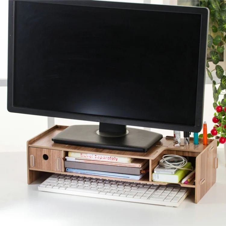 LCD Display Booster Wooden Keyboard Rack Desktop Storage Rack Shelf