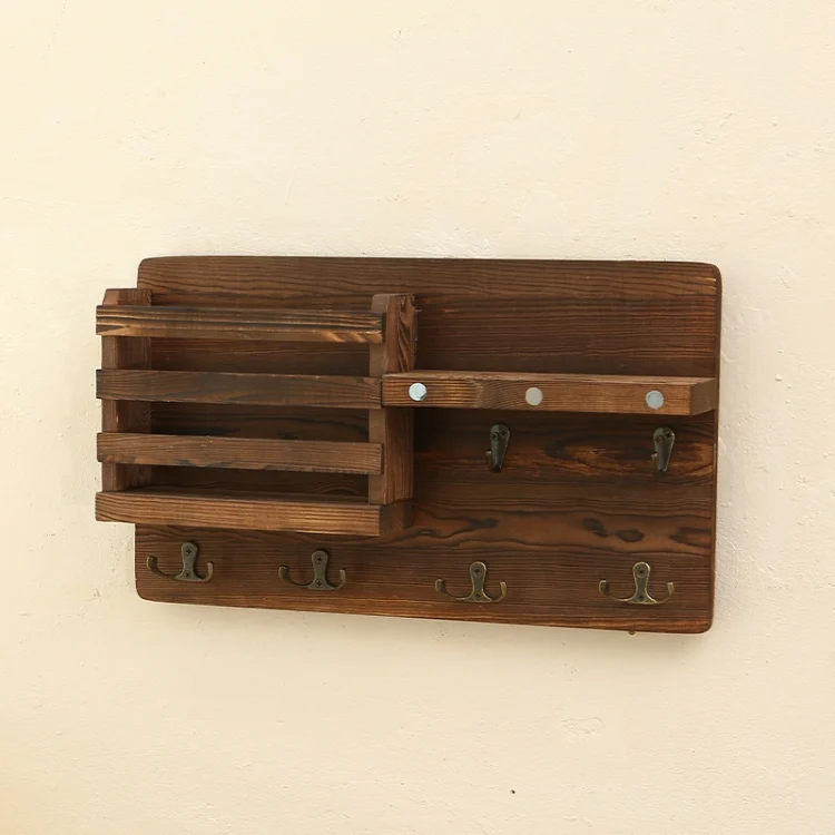Solid Wood Wall-Mounted Retro Storage Rack Shelf Entryway Mail And Key Holder