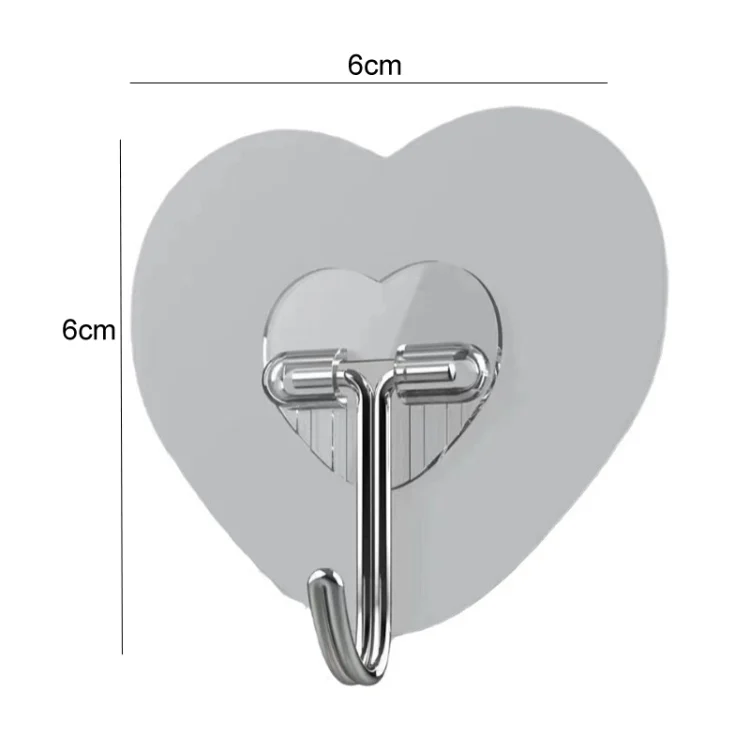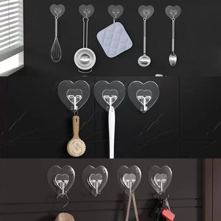 Transparent Self Adhesive Heart-shaped Hooks Door Wall Multi-Function Key Storage Hanger