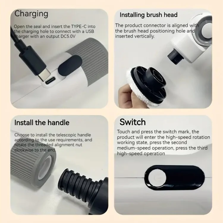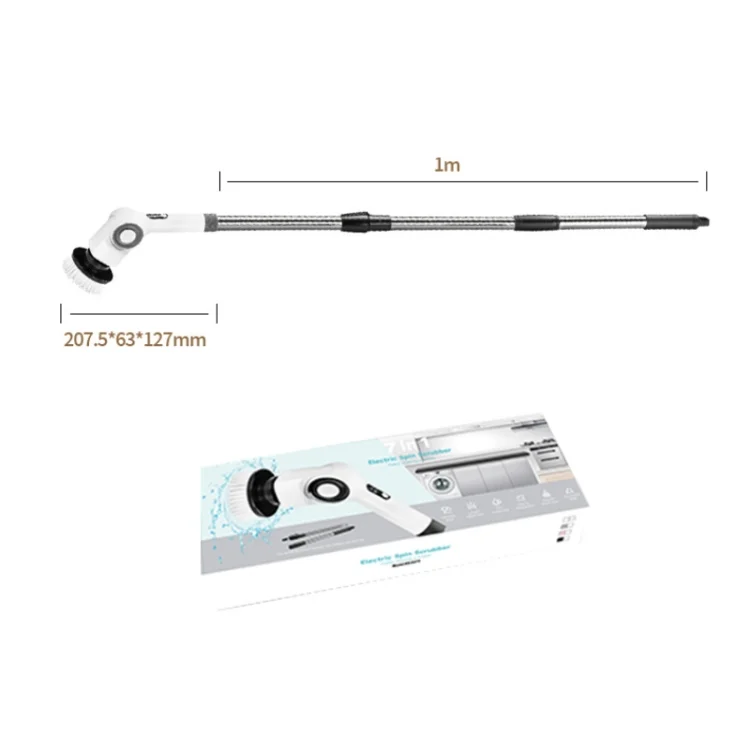 1. The cordless electric cleaning brush with a 2-section telescopic rod that can reach a length of 1m/23.6 inch, which can easily handle high or low cleaning.