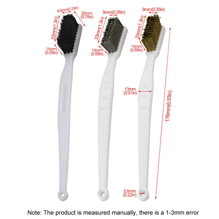 1. Material: plastic handle + black bristle / copper wire / stainless steel wire bristles