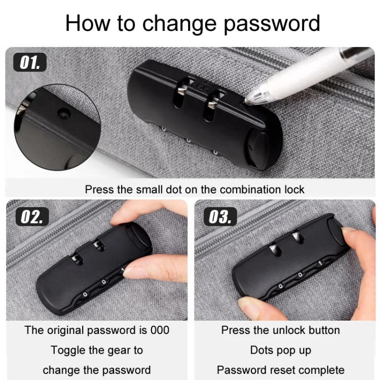 – Press the dot on the combination lock