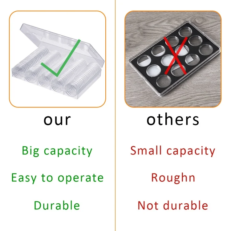 8. Transparent design: Each 30mm coin box is very transparent and can clearly see the coins inside. The transparent design makes it easy for the user to identify coins and has a good display function.