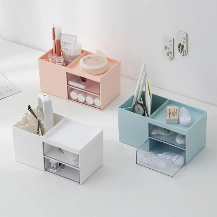 Dual Drawers Desktop Plastic Storage Box Makeup Organizer Case Cosmetic Container