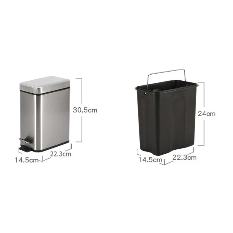 Household Stainless Steel Foot Pedal Small Rectangular Trash Can