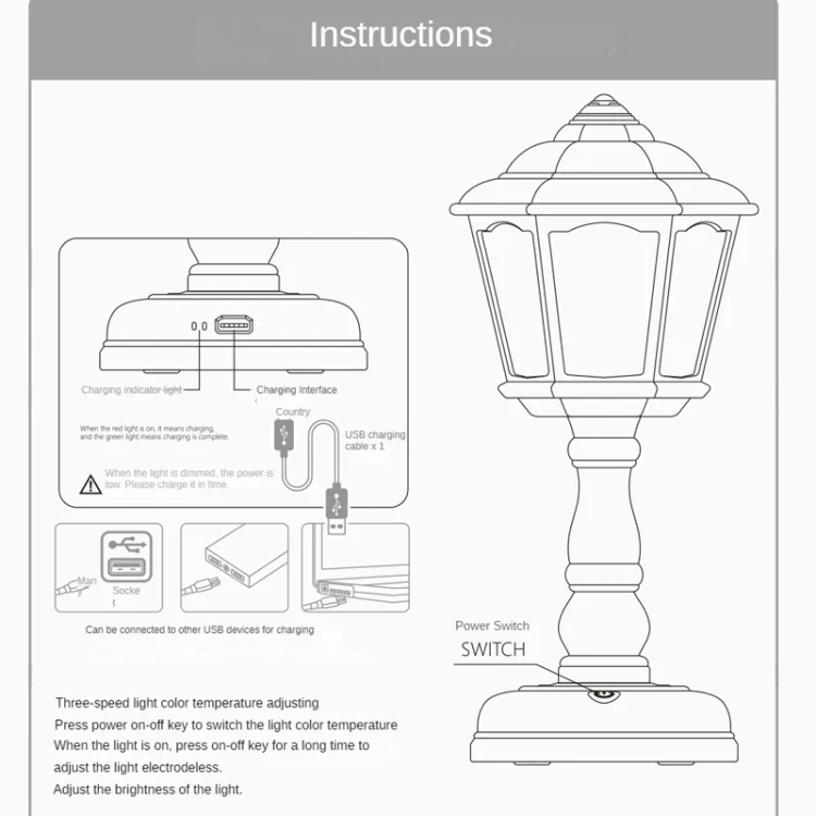 GIVELONG Retro Table Lamp USB Charging Small Night Light, Style:
