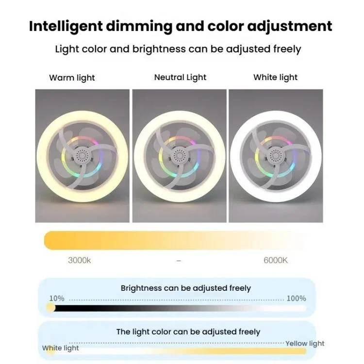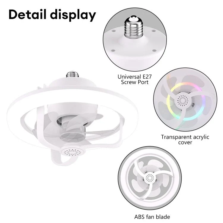 50W Ceiling Fan Light With E27 Socket 3 Speeds Adjustable RGB LED Strip