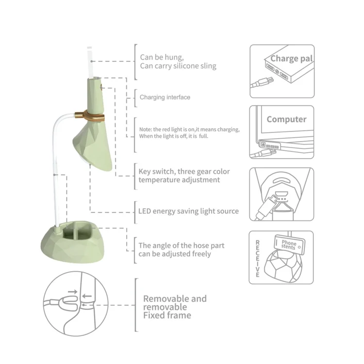 1. Intelligent eye protection, infinite dimming, according to different environmental needs, touch the long press from dark to light, bright light is not dim