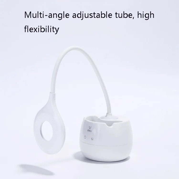 Deli 4326 Three-gear Adjustable Ring USB Charging Desk Lamp with Pen Holder