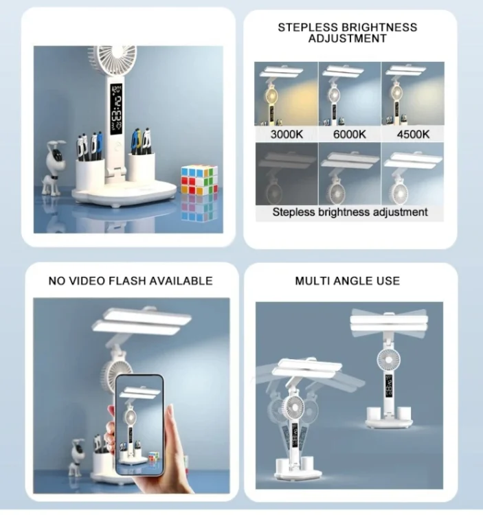4-head Desk Lamp Foldable Reading Lamp 3-gear Color Adjustment