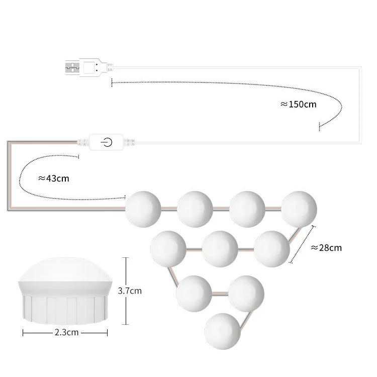 6. Size: bulb is about 2.3×3.7 cm/piece, the distance between the two lamps is about 28 cm, the length of the USB cable is about 1.5m