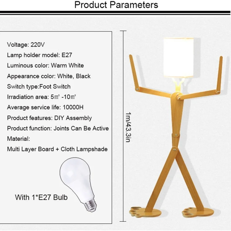 DIY Assembly Home Lighting Wooden Floor Lamp
