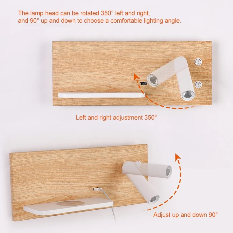 Wireless Wall Lamp USB 5V Charger Wall Lights Hotel Headboard Reading Lighting Spot Luminaire Lamp