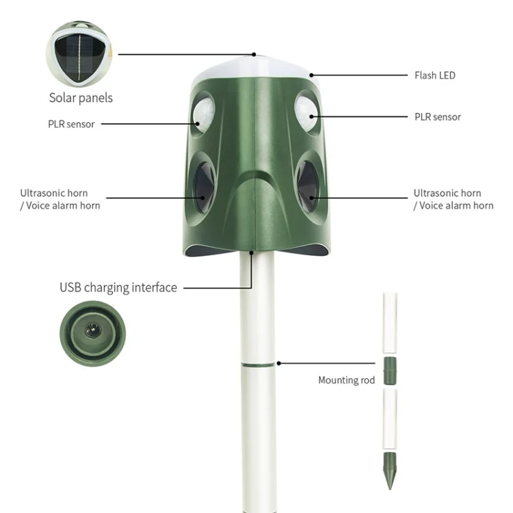 SJZ026 360 Degree Ultrasonic Solar Energy Outdoor Animal Repellent