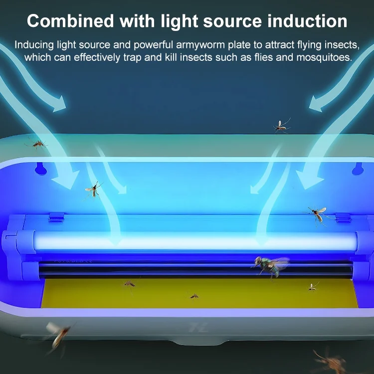 2. Mosquito light source + strong sticky insect board attracts flying insects, which can effectively trap and kill flies, mosquitoes and other insects