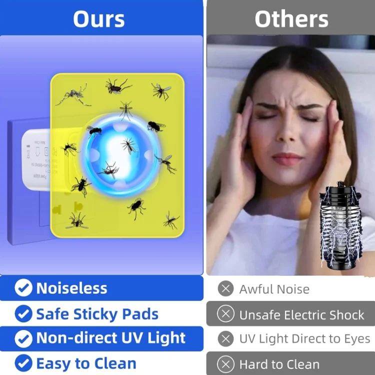 1. An effective fly trap, mosquitoes, fruit flies and many other insects are attracted by the UV light and captured by the strong sticky pad