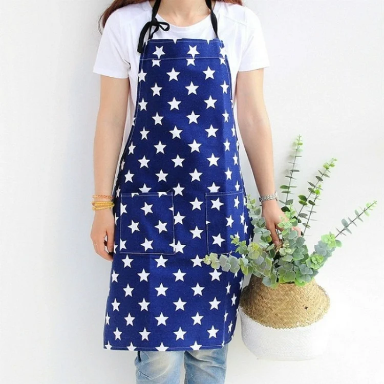Stars Pattern Kitchen Canvas Polyester Cotton Cooking Apron
