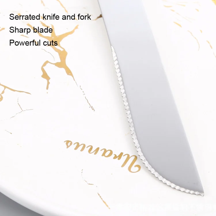 4. Serrated knife and fork, sharp blade, cutting powerful