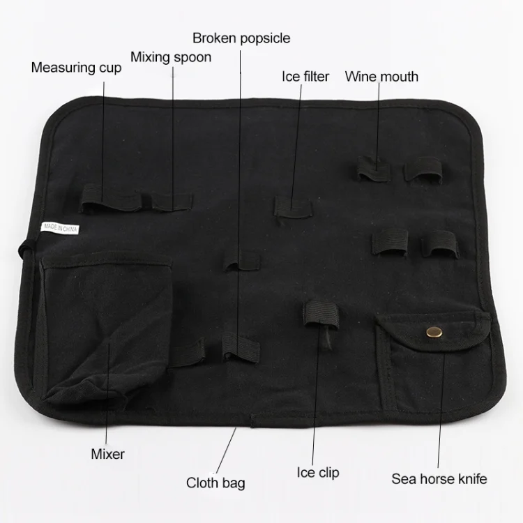 2. Set includes tools: measuring cup, mixing spoon, wine mouth, cocktail shaker, ice filter, broken popsicle, cloth bag, ice clip, seahorse knife