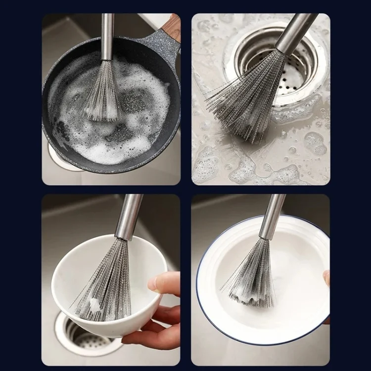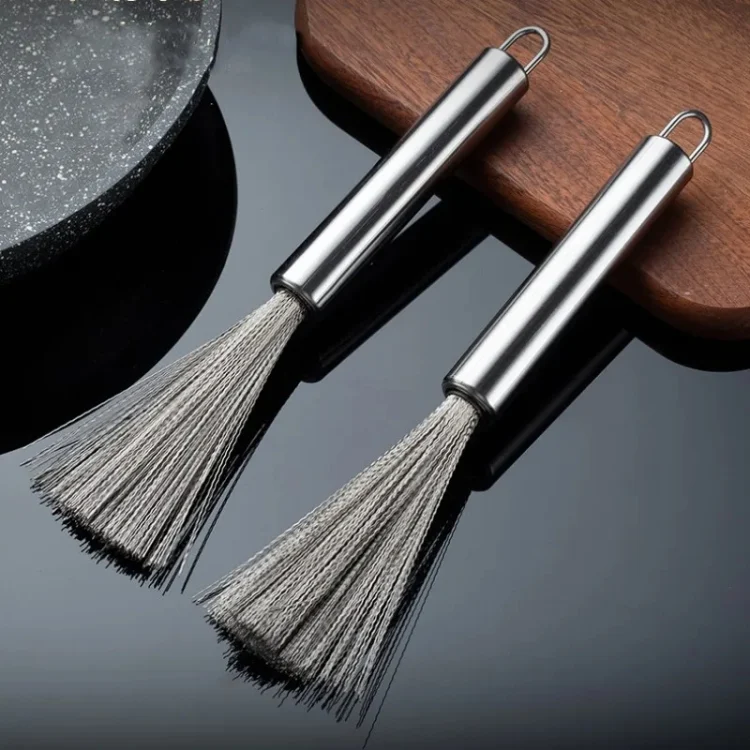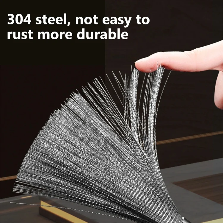 1. The steel brush is very flexible and can help clean your cookware quickly without deforming or bending. Unlike other brushes like rags, bamboo scrapers, or steel ball brushes, our brushes dont shed, hide food particles, and create odors, allowing you to thoroughly clean your cookware without leaving stains