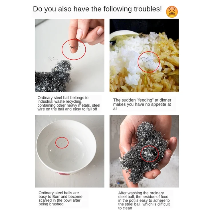 Stainless Steel Round Iron Cleaner Pot Brush Scrubber Home Cookware Kitchen Cleaning Tool