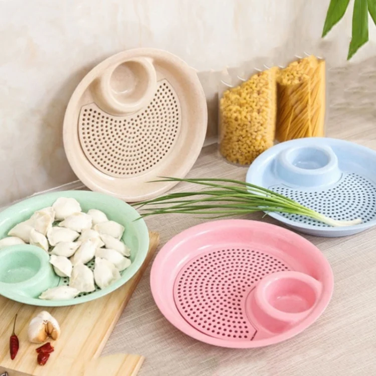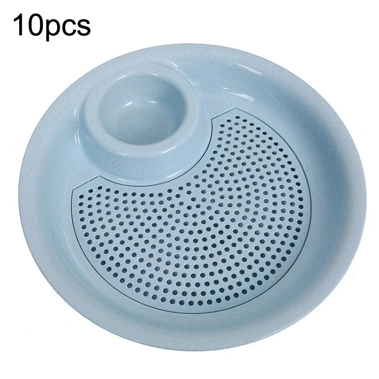 10pcs With Flavour Dish Dumpling Plate Wheat Straw Double Layer Drain Dish