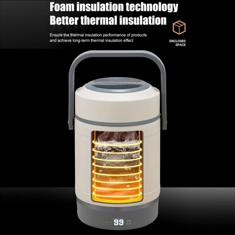 2.0L 304 Food Grade Insulated Lunch Box Electric Thermostat Lunch Bucket, CN Plug