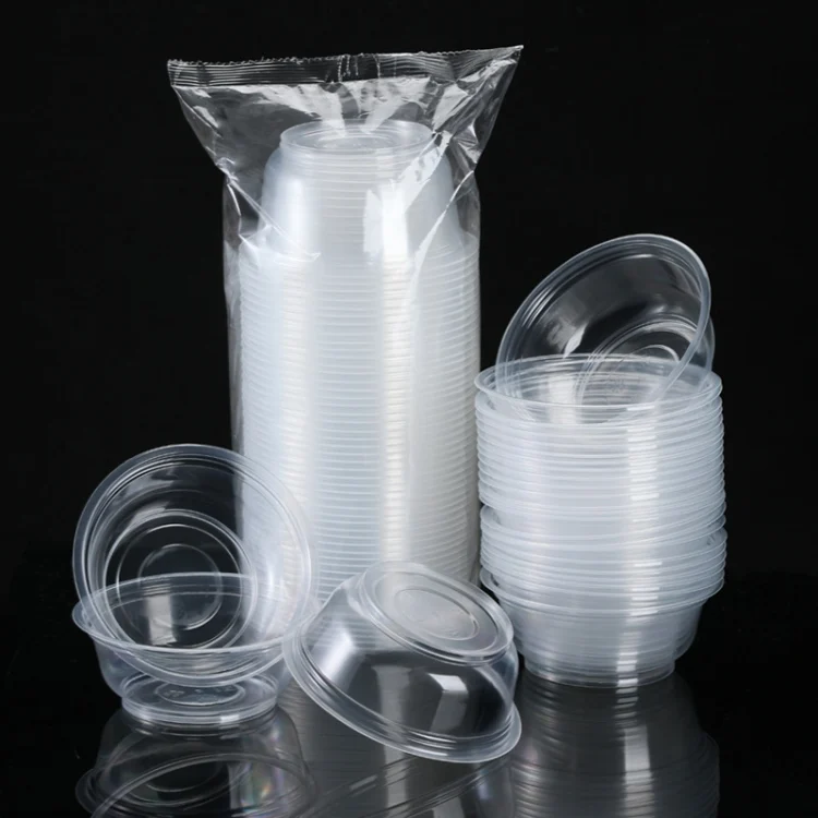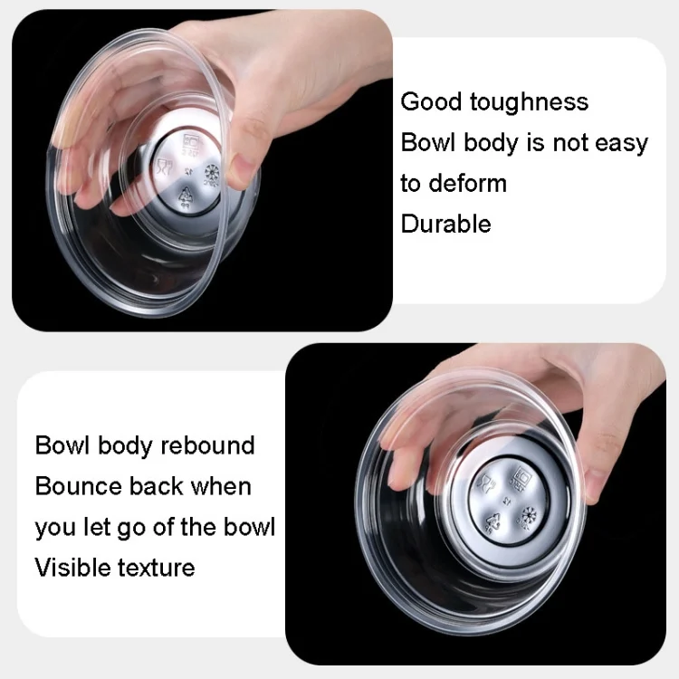 50pcs /Pack No Lid Disposable Round Plastic Bowl Thick Transparent Fast Food Soup Bowl