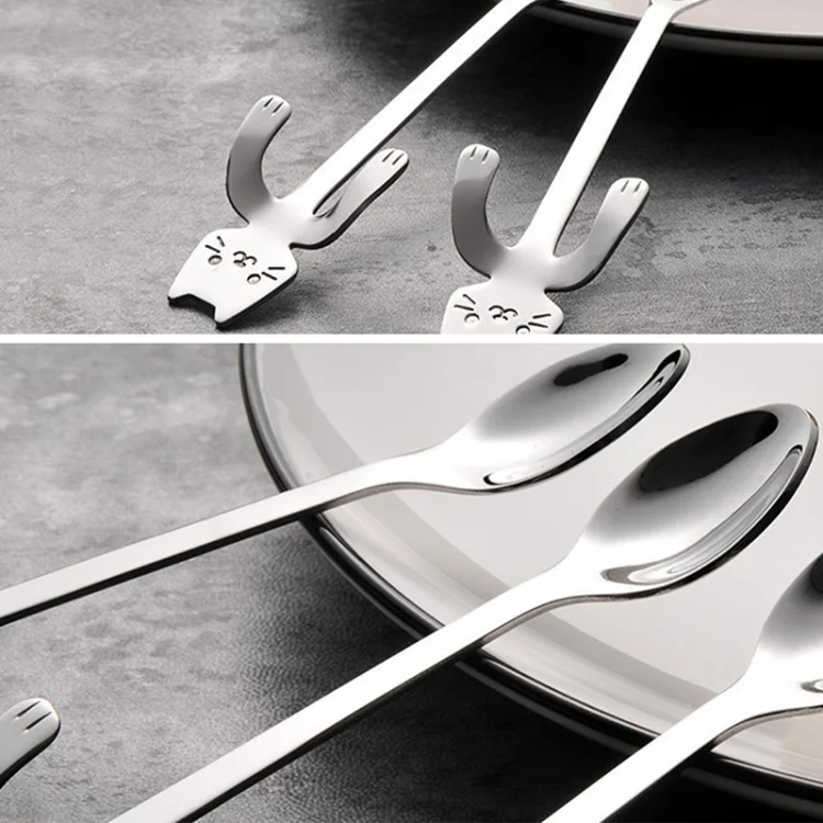 Creative 304 Stainless Steel Cartoon Cat Handle Coffee Stirring Spoons, 11.8*1.8cm