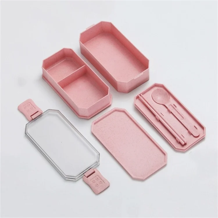 Double-layer Lunch Box Plastic Microwaveable Student Lunch Box Cutlery set