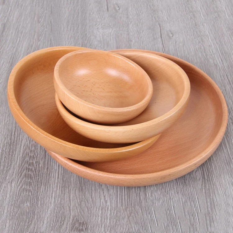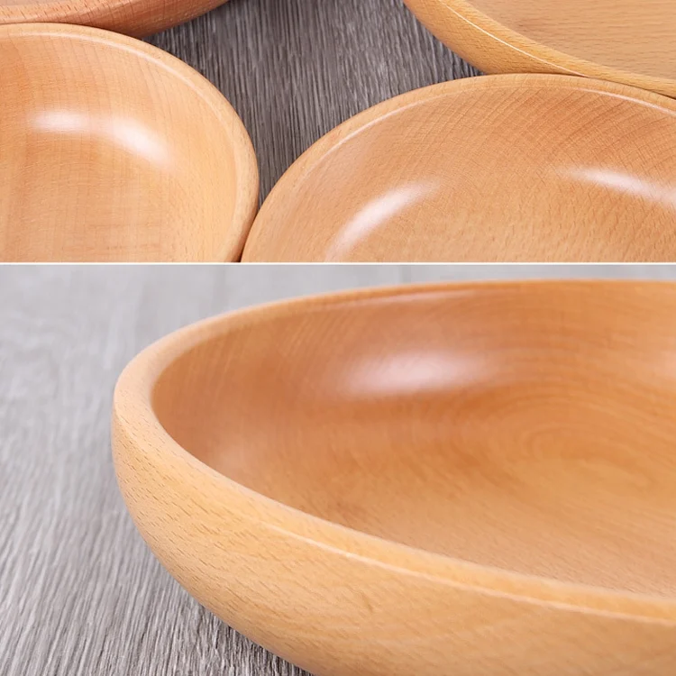 Round Fruit Plate Salad Bowl Thick Wood Dried Fruit Plate Fruit Sushi Plate