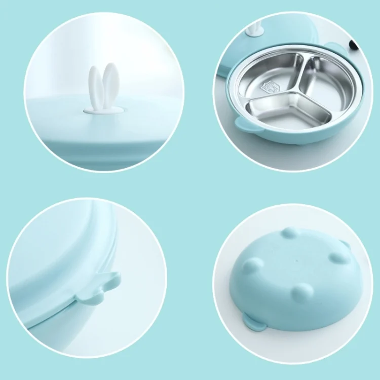Stainless Steel Baby Dinner Plate Cartoon Rabbit Ears Shape Lattice Student Tableware Infant Food Supplement Training Rice Bowl Fast Food Plate
