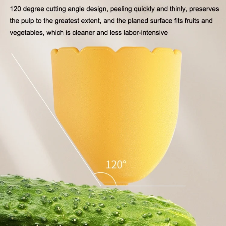 4. 120 degree cutting angle design, peeling quickly and thinly, preserves the pulp to the greatest extent, and the planed surface fits fruits and vegetables, which is cleaner and less labor-intensive