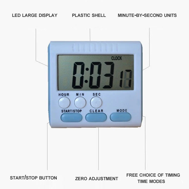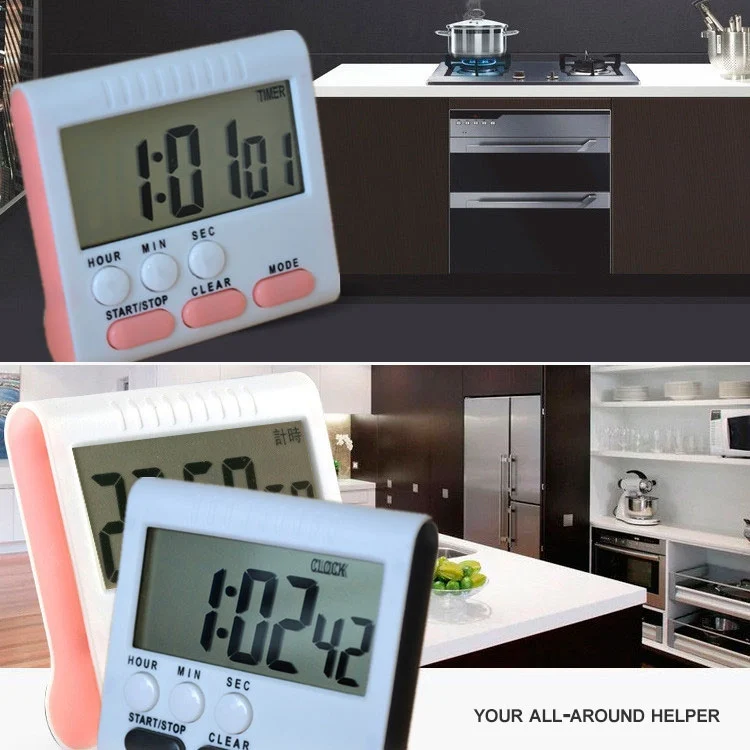 Kitchen Timer 24 Hours Digital Alarm Clock LCD Screen Magnetic Backing for Cooking Baking