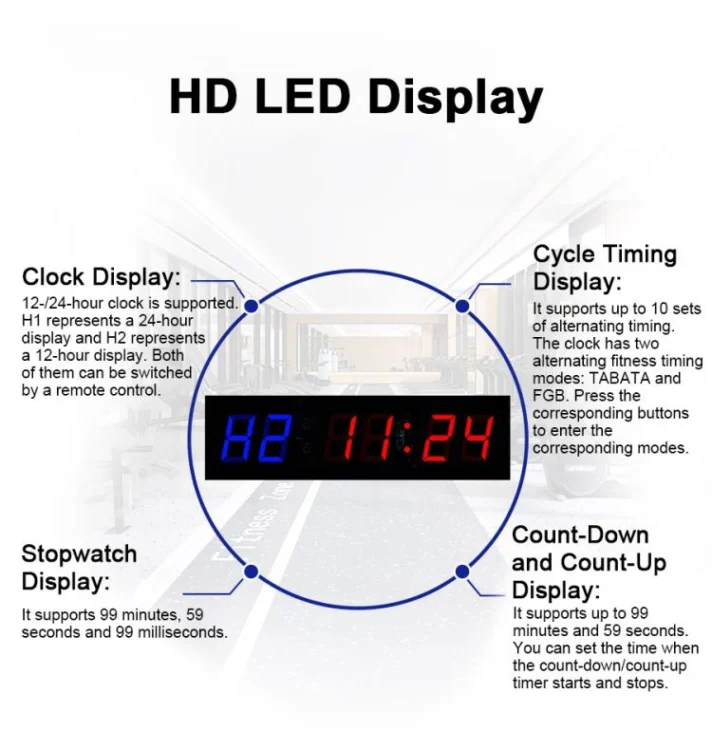 Function: positive timing, countdown, clock, stopwatch mode, cycle timing mode, FGB timing mode, TABATA mode, etc.