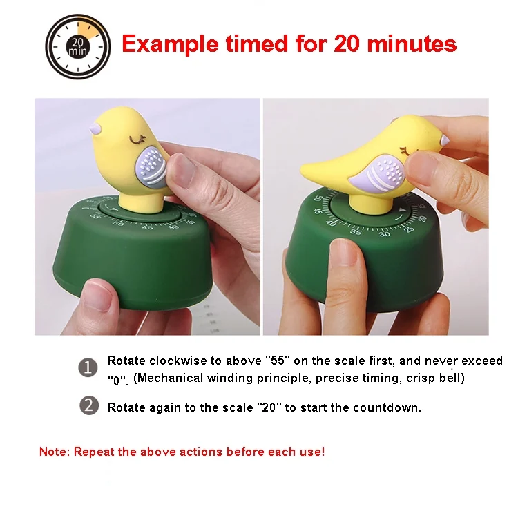 Tweet Bird Countdown Timer Student Learning Time Manager Kitchen Timer Mechanical Reminder