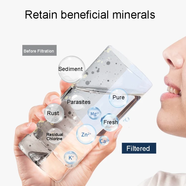 3. Sintered activated carbon layer, continuous improvement of filtration precision, adsorption of residual chlorine and residual impurities.