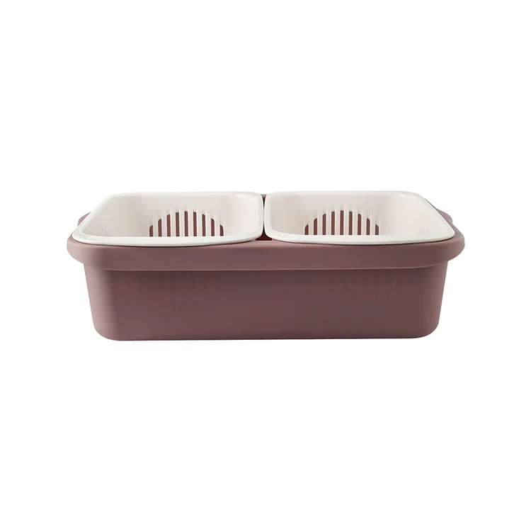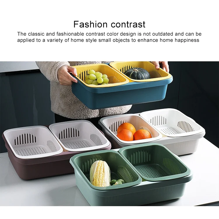 Double-layer Classification Square Drain Basket Kitchen Household Plastic Fruit and Vegetable Basket