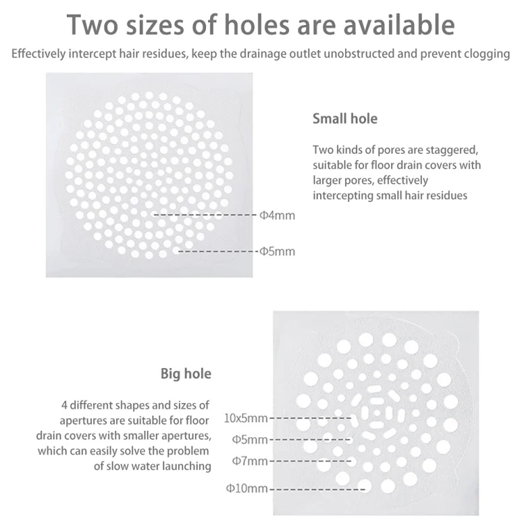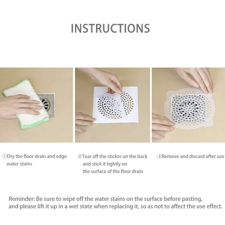 6. The 15x15cm floor drain sticker is suitable for filtering most floor drains and sewer outlets.