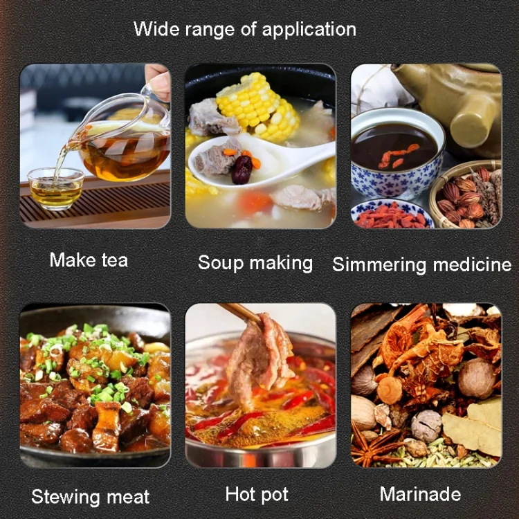 5. Scope of application: making tea, soup, boiling medicine, stew, hot pot, marinade, etc.