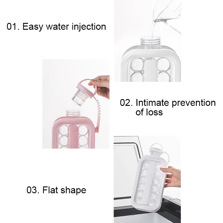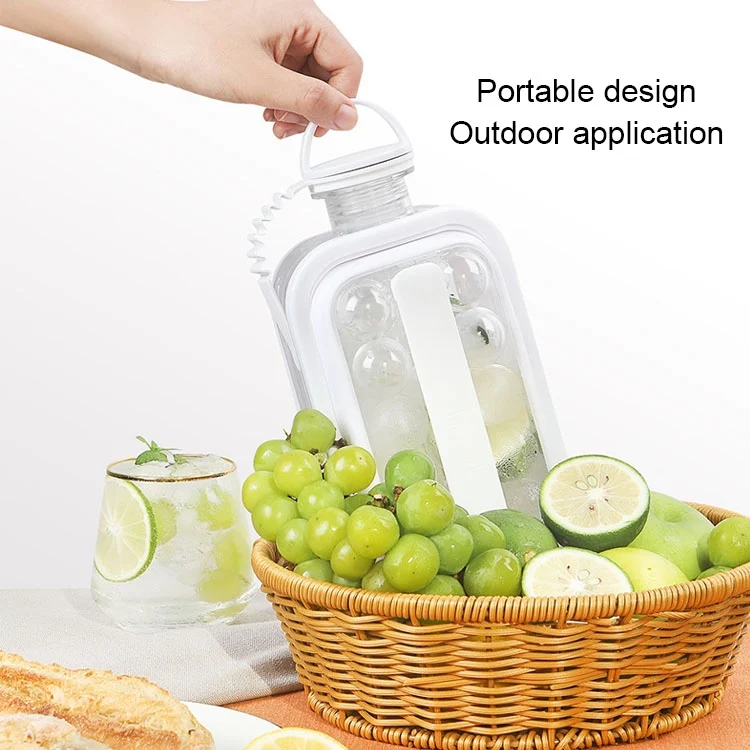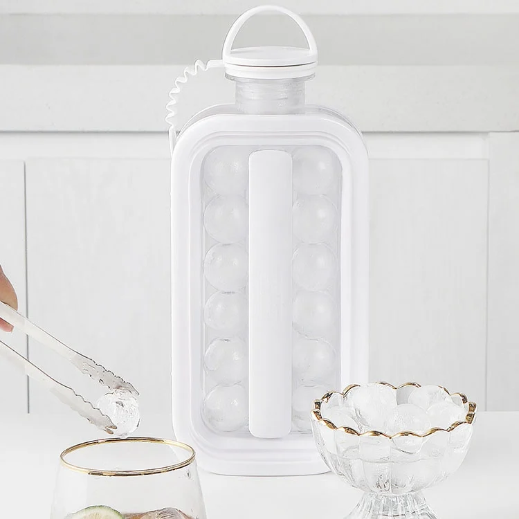 2 in 1 Round Ice Cube Mold Portable Ice Ball Maker Bottle Kettle with Lid White